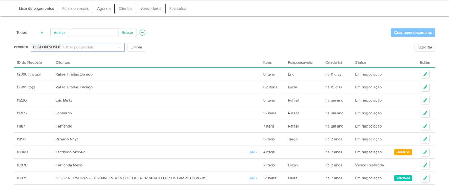 Quais são os orçamentos em negociação que possuem o produto X? Quais os produtos/fornecedores que estão em fase de negociação em ordem de volume de venda? HoopDecor responde essas e outras perguntas com apenas dois cliques.