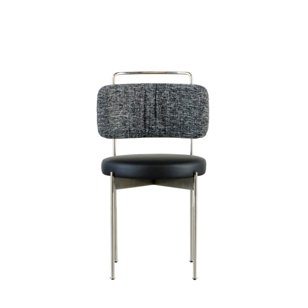 45X50X78H - ESTRUTURA EM ACO CARBONO PINTADO COR PRATA COM ASSENTO ESTOFADO EM TECIDO SHIMMY GELO E ENCOSTO ESTOFADO EM TECIDO TWEED AZUL . IMAGENS ILUSTRATIVAS: OBSERVAR SEMPRE A DESCRIÇÃO DO PRODUTO. PREÇOS VÁLIDOS ENQUANTO DURAREM OS ESTOQUES.. PEÇA ÚNICA.